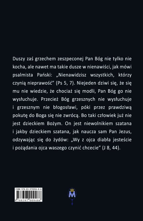 Czym jednak jest owo największe nieszczęście człowieka? Kiedyś pewnych rzeczy nie trzeba było katolikowi tłumaczyć, bo je po prostu rozumiał, nawet bez szkół. Były one częścią duchowej świadomości Kościoła. Dziś jednak, w wyniku zamętu, jaki powstał po Soborze Watykańskim II, wszystko trzeba tłumaczyć od nowa. Wiedziano, że największym nieszczęściem nie jest utrata zdrowia, choć dziś często słyszymy: „zdrowie jest najważniejsze”. Wiedziano również, że nie jest nim utrata majątku, ani nawet doświadczenie wojny. Największym nieszczęściem człowieka jest grzech śmiertelny!