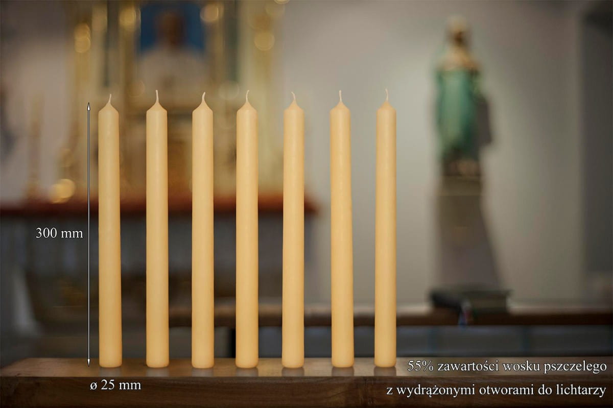 Świece ołtarzowe, jasne (300x25) 55% wosku pszczelego